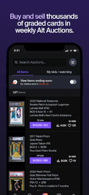 Alt is the modern marketplace to buy and sell trading cards. Built by collectors, for collectors, Alt offers a 24/7 auction and fixed price marketplace, the best cash advance program in the hobby, detailed data and card values, and the ability to manage your collection - all from the mobile app. Join our community and experience a new way to buy and sell cards.