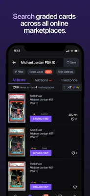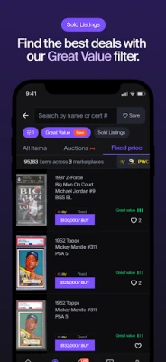 Buyers - Bid in our bi-weekly Liquid Auctions or buy from our Fixed Price Marketplace. - Compete in the most exciting extended bidding experience in the hobby. - View past auction sales, card values, and data trends straight from the app. - Easily save your searches so you never miss a card.