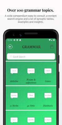 iii) #1 in Italy among students attending Liceo Classico and universities: this app became - and still is - the main reference tool for Ancient Greek studies in Italy (where it is named “Greco Antico App”). It has now been rearranged with a new layout and an English translation so that students worldwide are able to enjoy its functionalities.