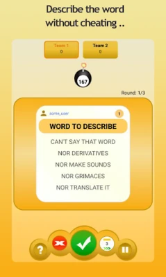• The player who describes the words may only use speech to help his teammates to guess the word and he can not say a forbidden/taboo word or part of it