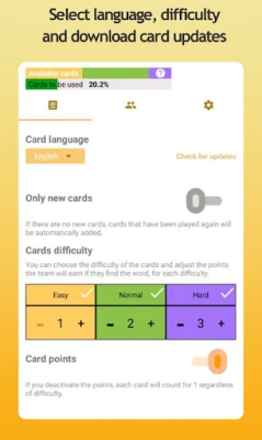 You can choose the difficulty of the cards you will play as well as change the points you earn from each difficulty before the game starts.
