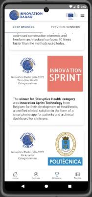 4. Innovation Radar Prize Award Section: Celebrating innovation excellence is a core aspect of our mission. The new "Innovation Radar Prize Award" section keeps you up-to-date on the latest winners, their groundbreaking innovations, and the prestigious award ceremonies. Gain inspiration from the best of the best.