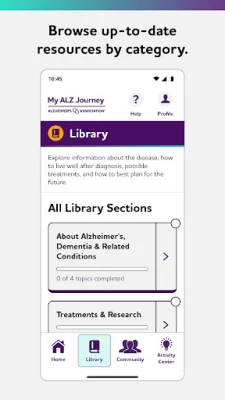 My ALZ Journey is a free, easy-to-use app from the Alzheimer’s Association® for people who are newly diagnosed with Alzheimer’s or another dementia, and their care partners. The app is designed to help you live well, plan for the future and connect to local resources.
