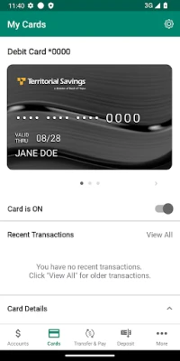 Features Include: • View account balances and transactions, including images of the checks posted to your account • Transfer funds between your Territorial Savings accounts • Real-time security and account information alerts • Pay friends and family with Zelle® • Deposit checks into eligible Territorial checking or savings accounts • 24/7 services and tools to help you manage debit card purchases and card security